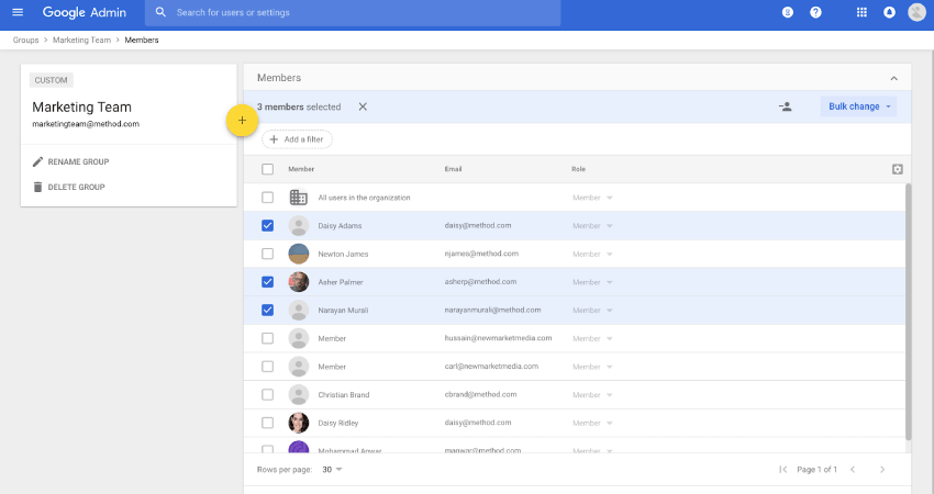 • Observar las direcciones de correo electrónico de los miembros: propietarios de grupos